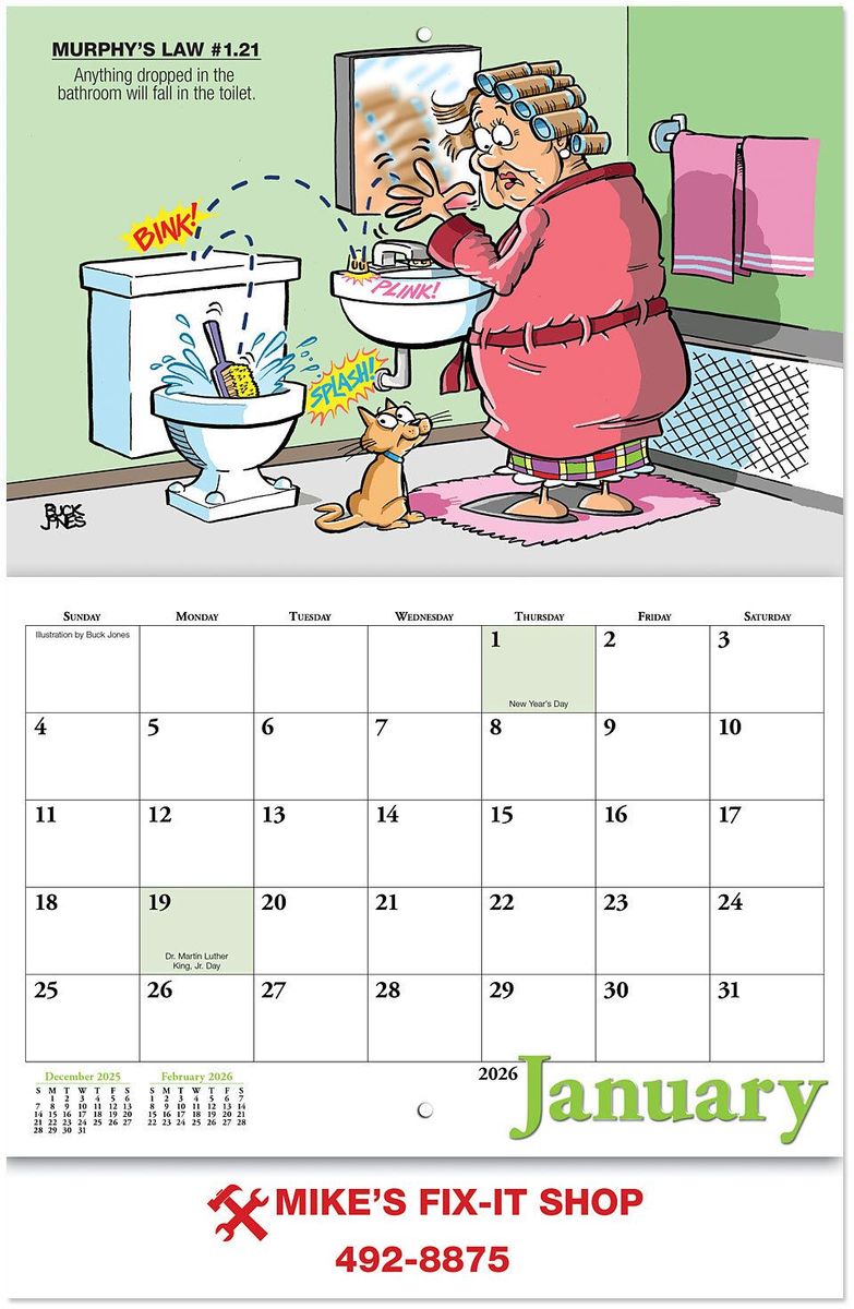 - Promote and entertain at the same time with the custom imprinted Murphy's Laws Stapled Wall Calendar