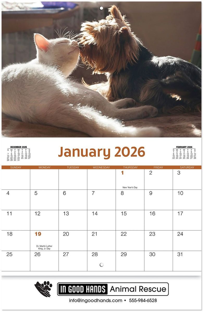 Highlights: Looking for cute and cuddly? Custom imprint this adorable Furry Friends Stapled Wall Calendar